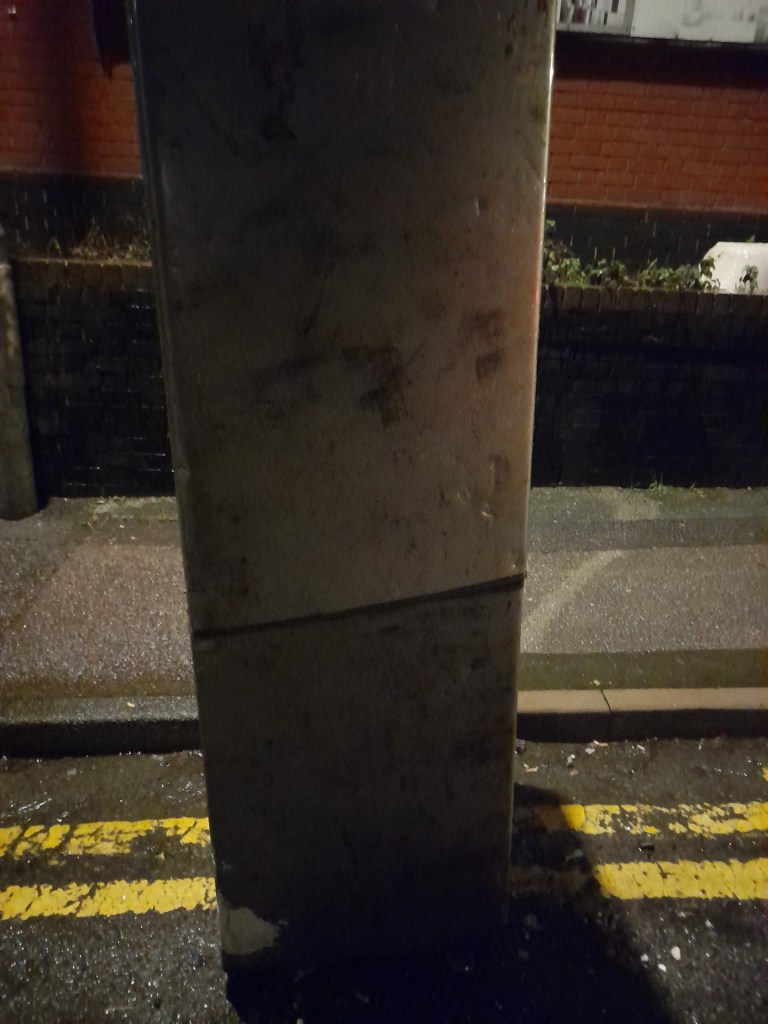 I headed to The Walsall Arms. En route I stopped in the rain to admire a fridge freezer that had been neatly deposited in the gutter. On double yellow lines though. I know that cars can’t park on these, not so sure about electrical appliances though. Not read my copy of The Highway Code since 1995, but I’ll check.