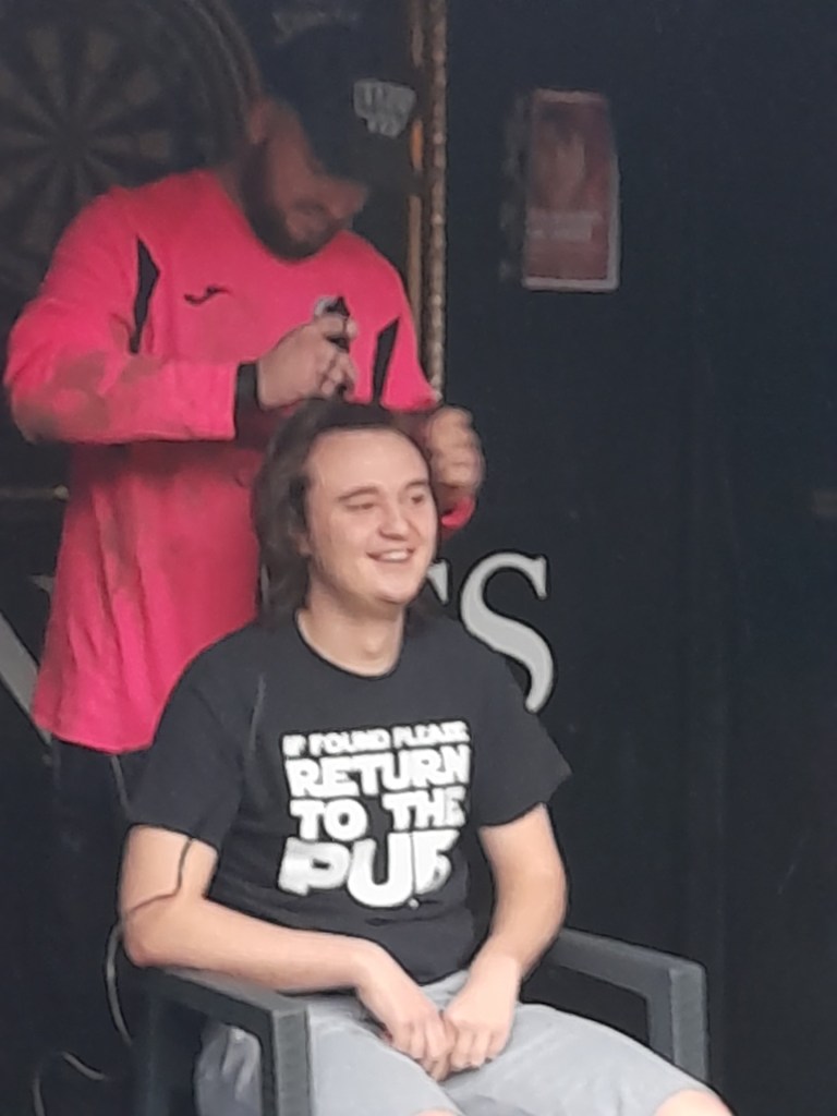 I couldn’t listen to it all though as I had somewhere to be. Cannock to be precise. My mate Rob who has been growing his hair for a while was having it shaved off to raise money for Cancer Research. It simply had to be done. Rob is a top lad, has great taste in music and football team, and is a source of entertainment on Twitter.