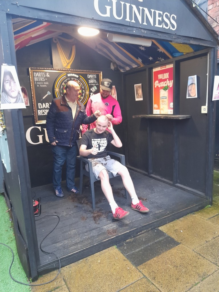 Rob’s shave was taking place at The Royal Oak, a cracking pub and always on the must visit list whenever I’m in town. It was very busy and a decent crowd where soon heading outside to watch the big shave off. Rob and I made a pact that I could have his hair when it was shaved off so I was glad I’d travelled.