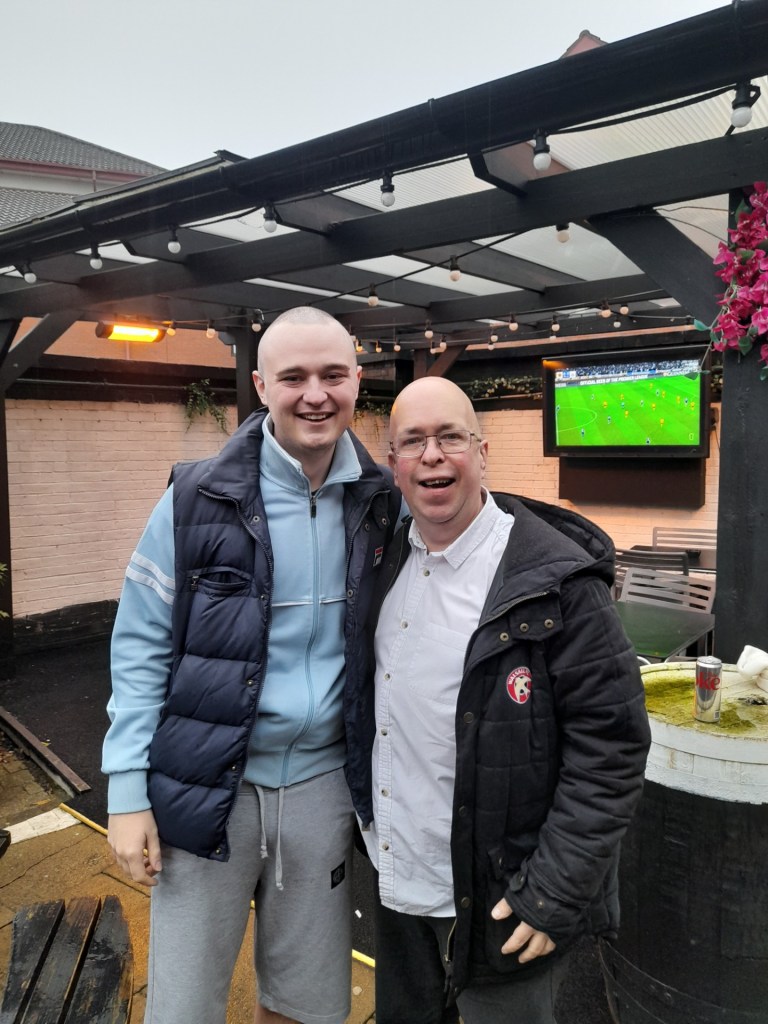 Back inside and I got Rob a Guinness, he’d more than earned it but in truth I’ve owed him a beer for a couple of years since I bumped into him in The Bull Ring Tavern in Brum after a Hard-Fi gig and he sorted me a ticket for the Walsall match the next day, saying “get me a pint.” Good to finally pay that debt off. If you’d like to donate to Cancer Research on behalf of Rob’s shave, the gofundme page is here. He’ll love you forever.
