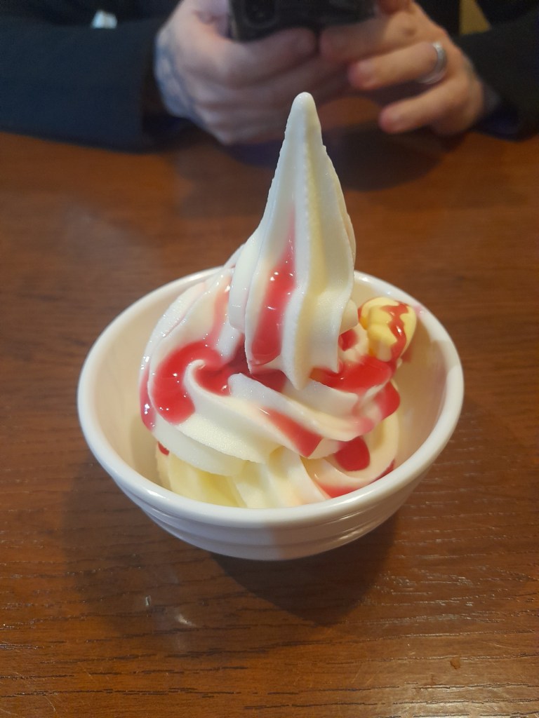 Bit of lemon cheesecake with a successful use of the chocolate fountain, although a previous user hadn’t been quite as adapt with it and had got chocolate over a good portion of the surface. I totally missed the ice cream machine until I saw someone walk past with a bowl so I made a beeline for that. Even shaking my hips in a gyrating motion to match the swirl of the ice cream. My hips don’t lie. Actually they do, they talk absolute bollocks.