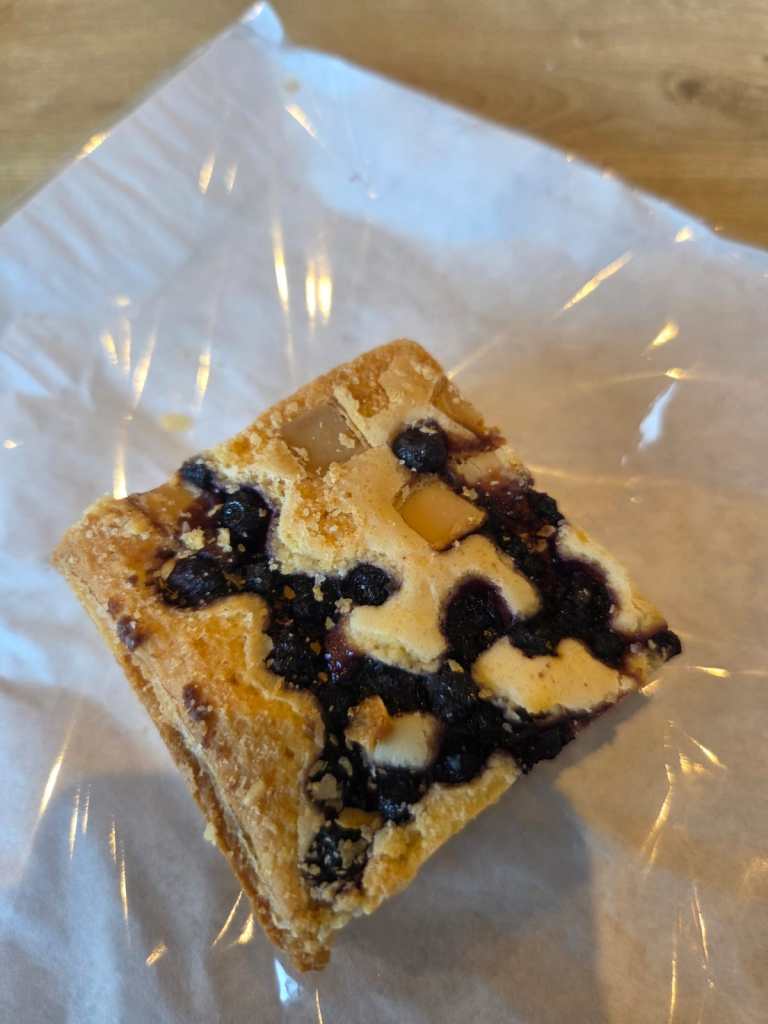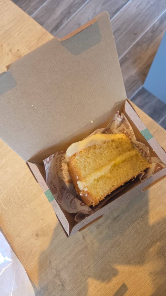 I was reflecting on a successful visit and ready to return when Carole played a blinder and asked if I wanted cake. Oh go on then. So she shouted us both some. I went for lemon cake and she had lemon and blueberry blondie. She described her cake as “gorgeous” and mine was amazing. I tucked in whilst watching a sudden hail storm and peoples responses to it..