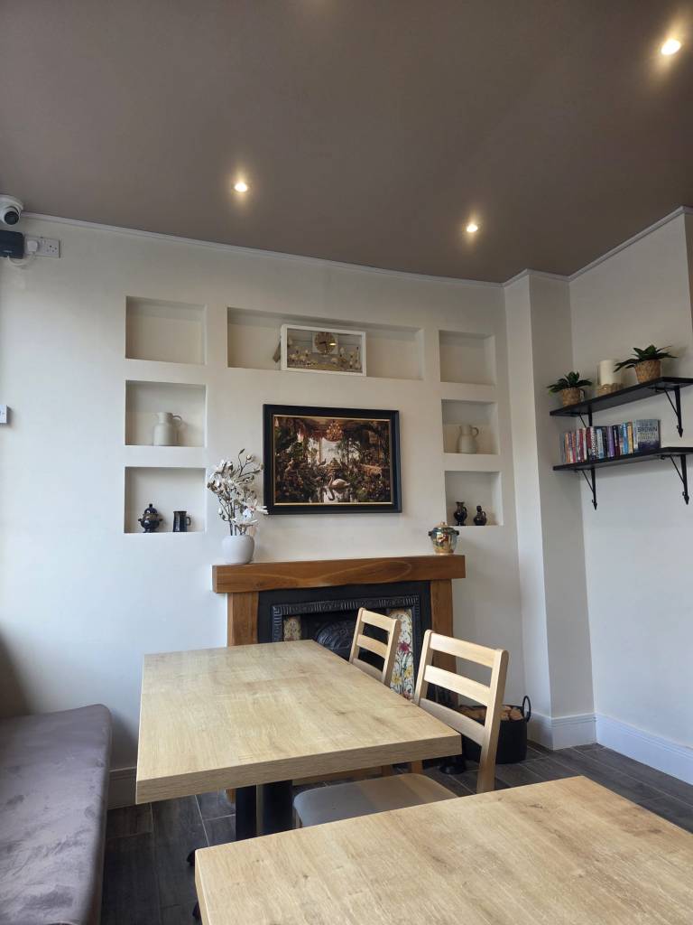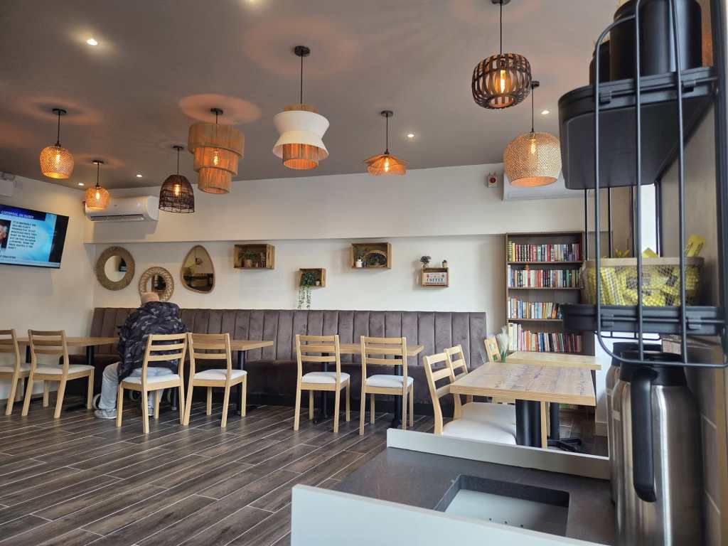 A sign on the door advised 10% discount for NHS staff. These guys clearly know their target market. First impressions, well it’s been totally done out from the Manor Cafe era. Carole commented on how clean it was, the nice ambience (first time I’ve used that word in a review I think) and that they clearly had a vision when designing the place. The ceiling had a variety of different lampshades, identical to what they did in The Three Wishes in Pinner. See here for that blog if you want a picture.
