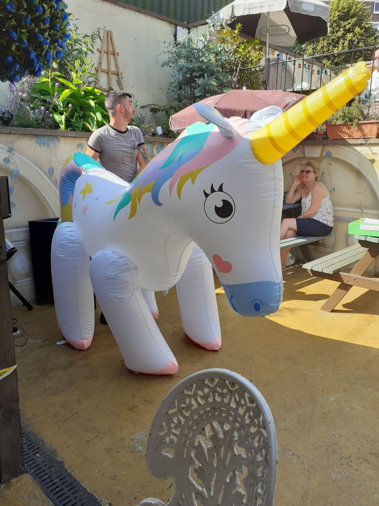 From there we headed back to Katz for more lemon and lime cider. The barman who calls me Andy was behind the decks in the new outdoor disco set up, then it was back to Blue Gingers for more curry goodness and we dashed up to the Walsall Arms to round the night off. There was an Abba tribute act and then a bit of a disco and it was superb in there. Craig decided we need Baileys and enjoyed his so much we stayed for another. We had a great time and they didn’t need to bring out the huge inflatable Unicorn water sprinkler which had been the highlight of the previous Sunday’s entertainment. If you ever want to pretend that you’re in the 5ive video for “Let’s Dance” just simply dance around while a giant inflatable Unicorn sprays water over you from above.