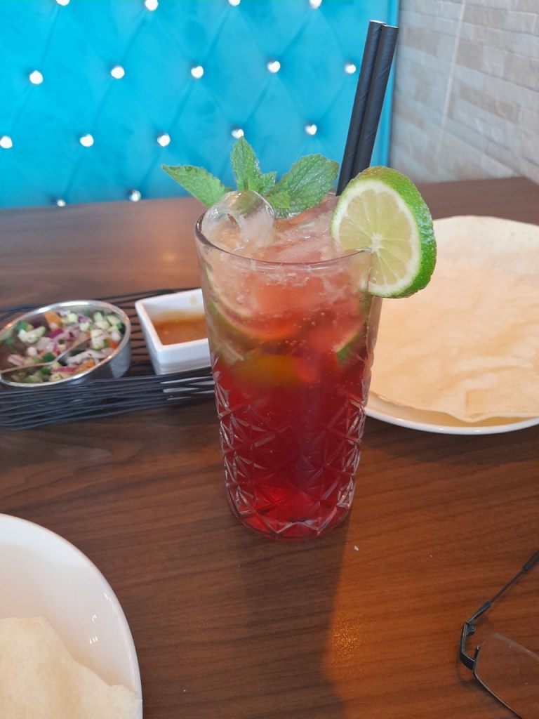 I went poppadoms, starter and main. Lavish food on me please. I ordered the Strawberry Mohito “mocktail” too. The service was quick. My chicken Pakora starter was out before I’d finished the 1st poppadom. It was superb and at a bargain price too.