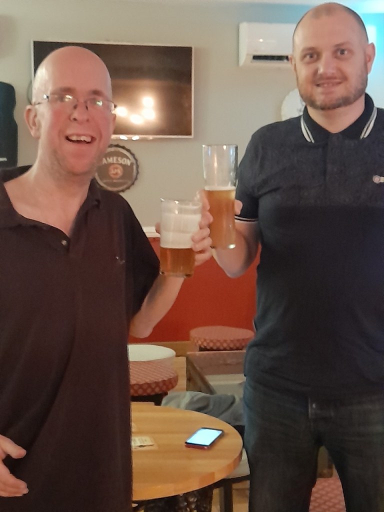 With Kimbo now with us we needed a new team photo. I scanned for who was going to take it and opted for a bloke just heading to the bar but he looked round and gave me evils so I opted to try a selfie and it worked.