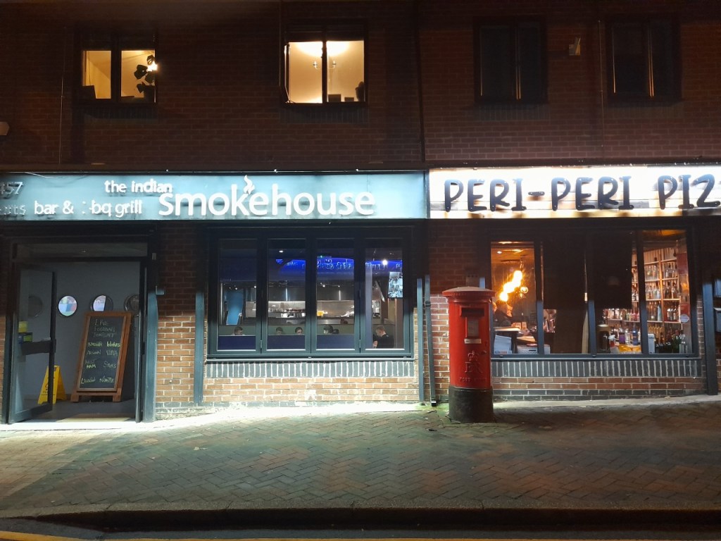 As we walked to the next place I spotted a bar in another unit. It has two signs Indian Smokehouse and Peri Peri Pizza. Dean said it was a food place but you could also sit in there and drink and there is usually some Walsall fans in. I was sold and in we headed.