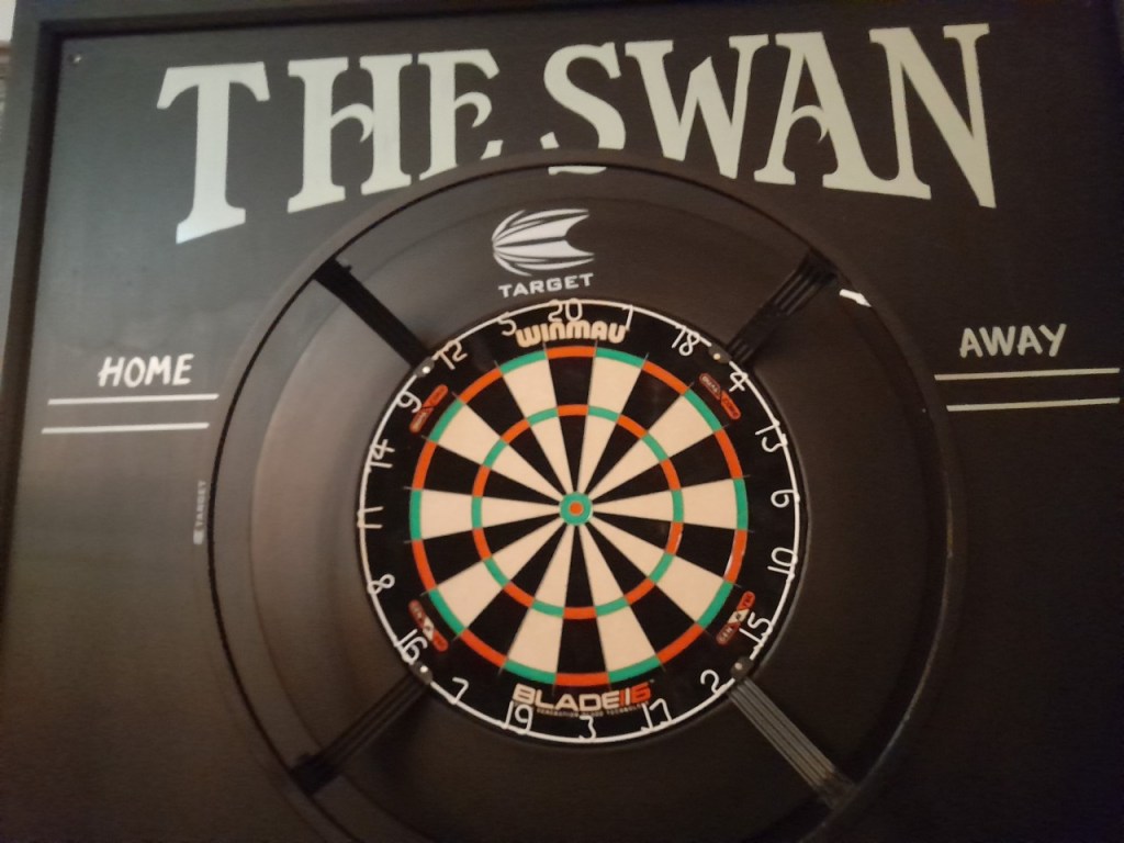 The pub used to be a two room venue with a central bar but it is now all in one with the bar to the right. There was a brand new dartboard without a prick hole in it (I checked). I could have thrown nine darts and it would have remained like this, though the wall around it may not have been so lucky.