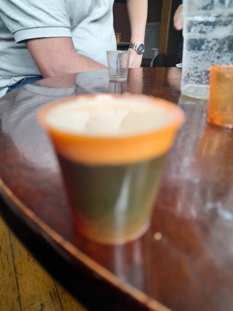 More drinks followed, including a random red shot which was surplus and thrust in my direction (thinking Cherry Sourz) but after a very pleasant couple of hours the group decide to move on. Back to The British Lion it was.