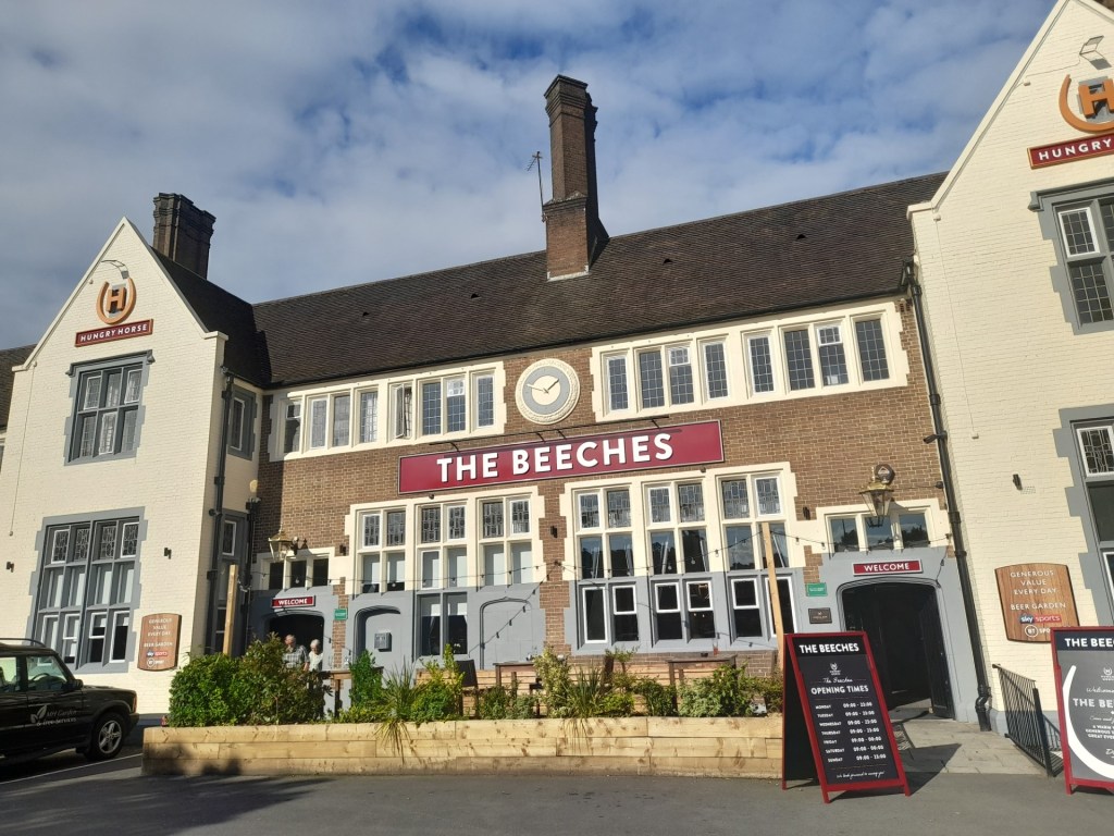 We moved onto another pub which I’ll report on in a later edition then went to The Beeches. Again outside seating with astro turf to cushion our walk to a table where the previous occupants had left a can of Lynx in a half drank pint of Carling.
