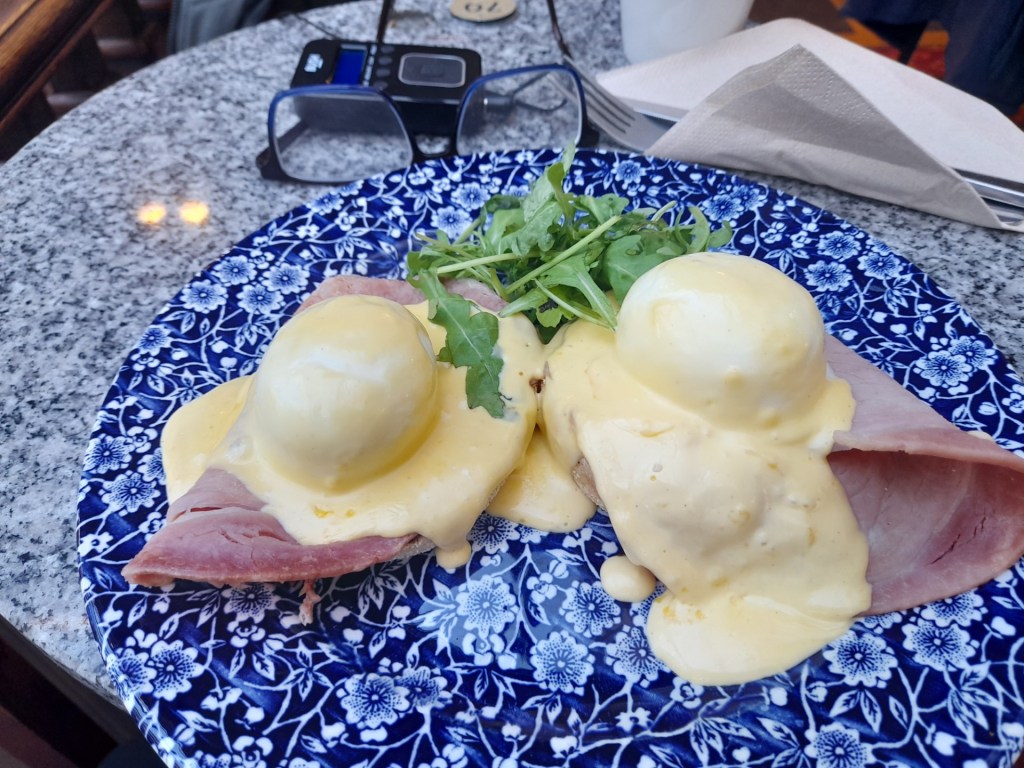 I had Eggs Benedict which was divine and quickly demolished. I say quickly, it didn’t start well. I must have had the bluntest knife in the place, only to realise it was upside down. To be fair I wasn’t very awake and not paying attention but it felt like payback for chuckling at the Rishi Sunak trying to use a hammer video a couple of days earlier. It was an enjoyable visit. Even a lass smiled at me twice as she passed. Yes I could have gone to the shop by my house for bread which would have been quicker and cheaper but where’s the fun in that? (P.s I’ve just had the sausage sandwich prior to typing this and it was bloody lush).