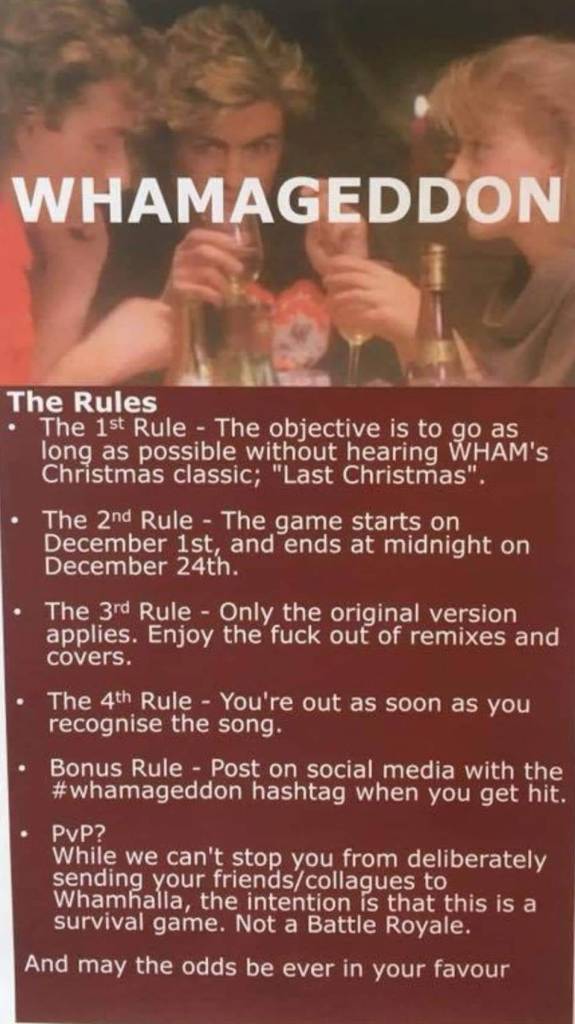 December marks the month of Whamageddon where participants try to avoid hearing the original version of Last Christmas until midnight on Christmas Eve. I’ve gone out on day 1 the last two years so was hoping for better this time.