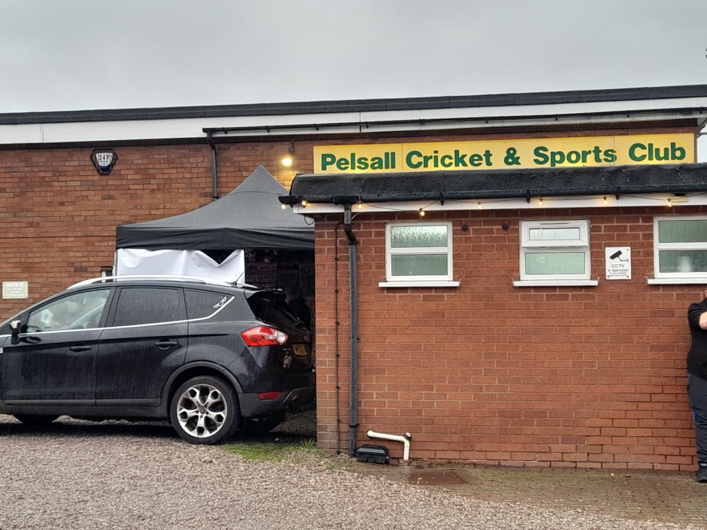 We walked to Pelsall. Storm Bert was still with us but his wind had calmed down to just the 16mph. Pelsall Cricket Club was next and I hadn’t even got through the door and I was being greeted by Helen Baker, one of the finest of my fellow Walsall FC fans. There was a Christmas Fayre going on with an outside Bavarian Bar and reindeer had just arrived. It was such a shame that the weather was absolute poo with wind and rain. Absolutely not Cricket weather.