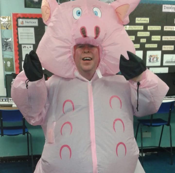 So to summarise, I love the Prince Of Wales Theatre. Had great times on stage, so many laughs in the dressing room and post show beers when that bar in the pictures opens. It’s by the gents dressing room which is a result. My only regret is that I didn’t get to run across the empty Prince Of Wales stage in an inflatable pig costume like I had the pleasure to do in Great Wyrley. It got big laughs every show. And yes I’m mentioning this just so I can show the picture.