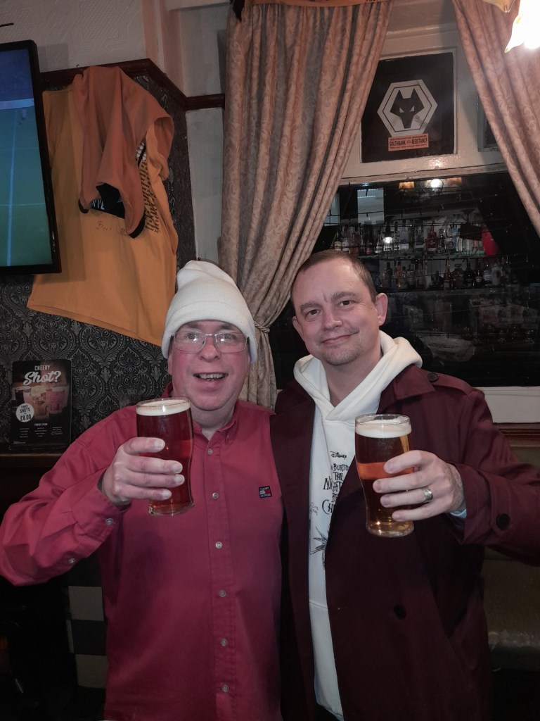 The final discussion in here was about the film Poor Things which we are both massive fans of. With time flying by I postponed my scheduled bus and we dashed to our final stop The Moon Under Water – Wolverhampton’s Wetherspoons. It was busy but we found a space at the bar. I still wasn’t done with discussing Poor Things and relayed the scene when a well spoken English bloke in a Victorian suit said “I’ll smash his fucking head in.” I must have emphasised this a bit too eagerly as a barmaid gave me a right look on saying this. I’d like to think that she went home that night and told everyone “we had a right hard bastard with a Walsall accent in today. Well hunky he was.”