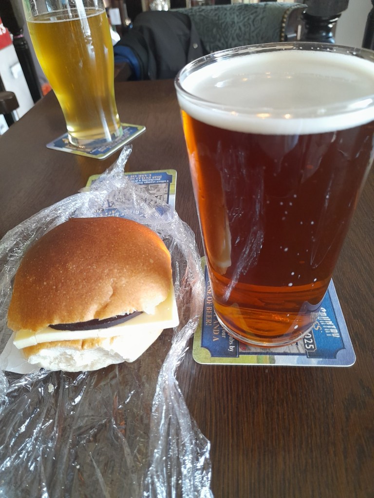 In here we took our usual table on the balcony. On a previous visit I’d mentioned the availability of the cheese, onion and black pudding cob. Craig had no idea that this combination of filling was a thing, so this time I purchased one so he could see for himself. I had no intention of eating it, it was bought just for show and tell purposes. 10 minutes later I caved in and gobbled it down like I hadn’t eaten in a week.
