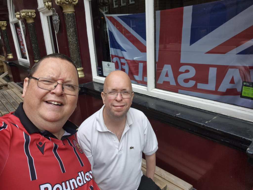 I sat with Chris and we spoke outfits. I said I’d considered a Walsall top but in the end opted for the same outfit as the Chesterfield second leg due to superstition. I say the same outfit, but I couldn’t remember which socks I’d had on but I had a 1 in 18 chance of getting it right. Chris had also done the same but he’d remembered everything.