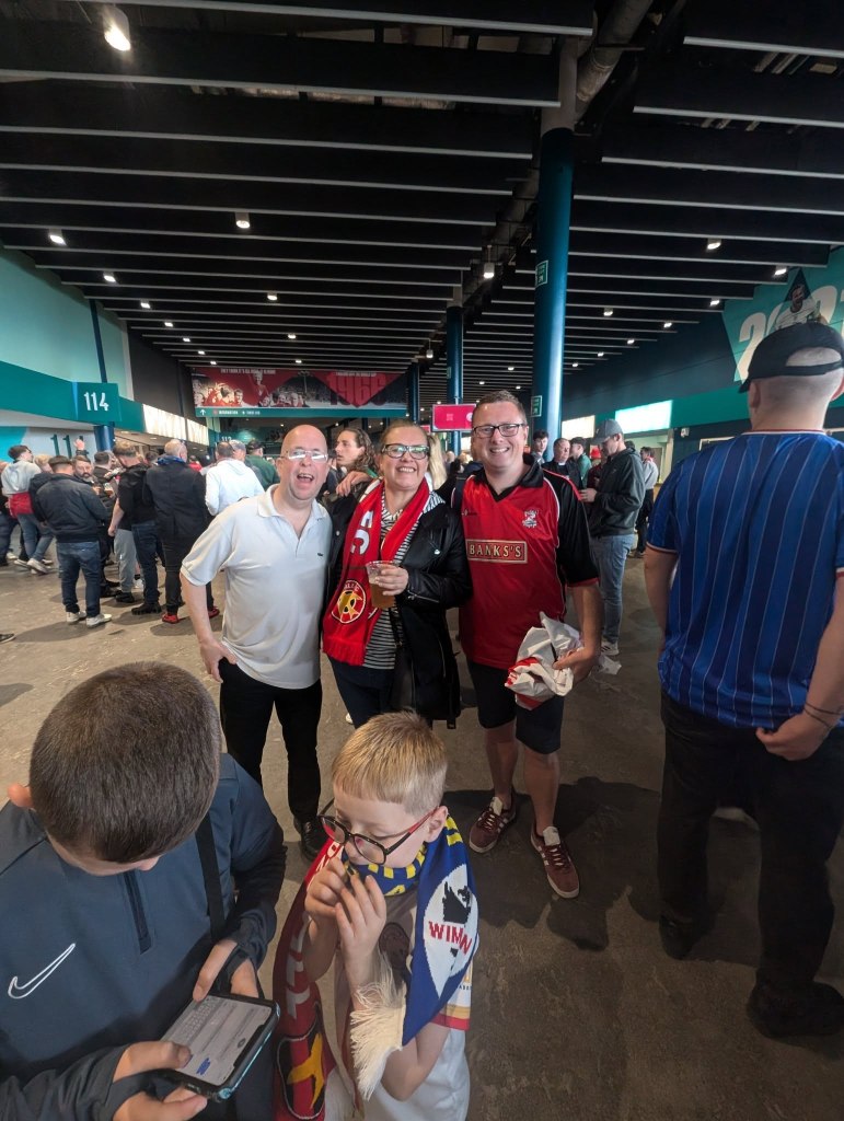 We had to go through entrance C which I liked. C is my favourite letter. So many good words begin with it like chicken, curry, cheese, chips and I’m sure there’s a couple more corkers. Josh, Mrs Josh (Lyndsey) and their son George went straight up into the stand. After another quick photo opportunity.