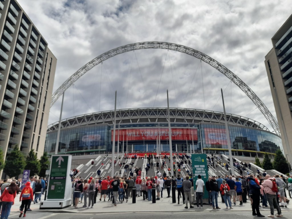 I barely slept the night before and wasn’t overjoyed when the alarm sounded at 5am but I was up and at it straight away. Kettle on and I then went for a chat with my smart speaker. “Alexa….good morning.” She responded with a good morning and a fact about the day that I’d forgotten before the kettle had boiled. I followed up, “Alexa…we’re going to Wembley.” “Sorry, I can’t help you with that.” Thankfully I’d already had all the help I needed with Tim sorting my ticket out.