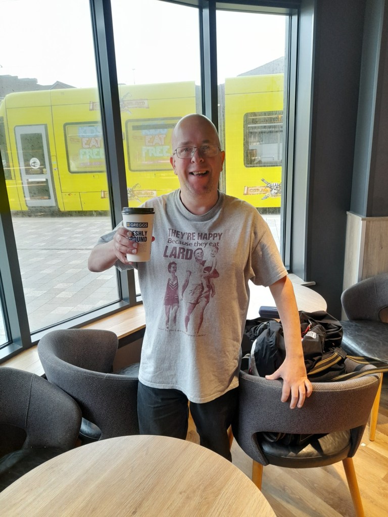 I stopped at the Greggs at Blackpool North railway station, had a laugh with the nice lady serving. It was a superb weekend and a train coffee was a nice way to round things off. Shocking on my part though that I didn’t make it to a Ma Kellys all weekend and there was one 5 minutes walk from my hotel. Must try harder.
