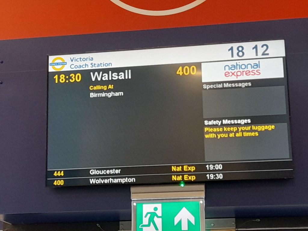 I was soon back on the Central Line. Cheers Theydon Bois for a great couple of hours. I had to change at Mile End. It was just across the platform to pick up the District Line. I love the Underground. It’s a piece of piss to navigate. Even with my notoriously shit sense of direction. Going to plan b earlier in the day meant I was only using 4 of the lines rather than 5 but I still loved it. I was soon at Victoria. The signs for the coach station quickly dried up after leaving the Underground and I eventually found it via using one of those on street map things. I was glad I’d allowed myself 90 minutes for this mission as it wasn’t straightforward.