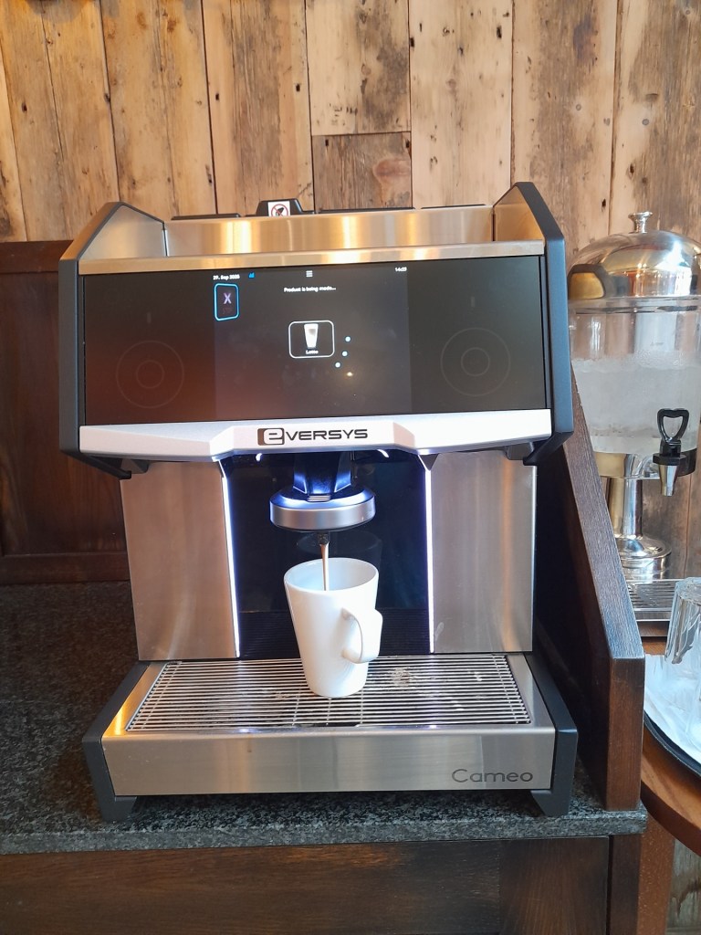I opted for an iced latte on my final visit to the machine. I made my selection then turned away to survey the scene. Turning back I saw a message “have you bought a glass and ice from the bar?” No I bloody haven’t. I went back to normal latte, just to be less of a ponce of course.