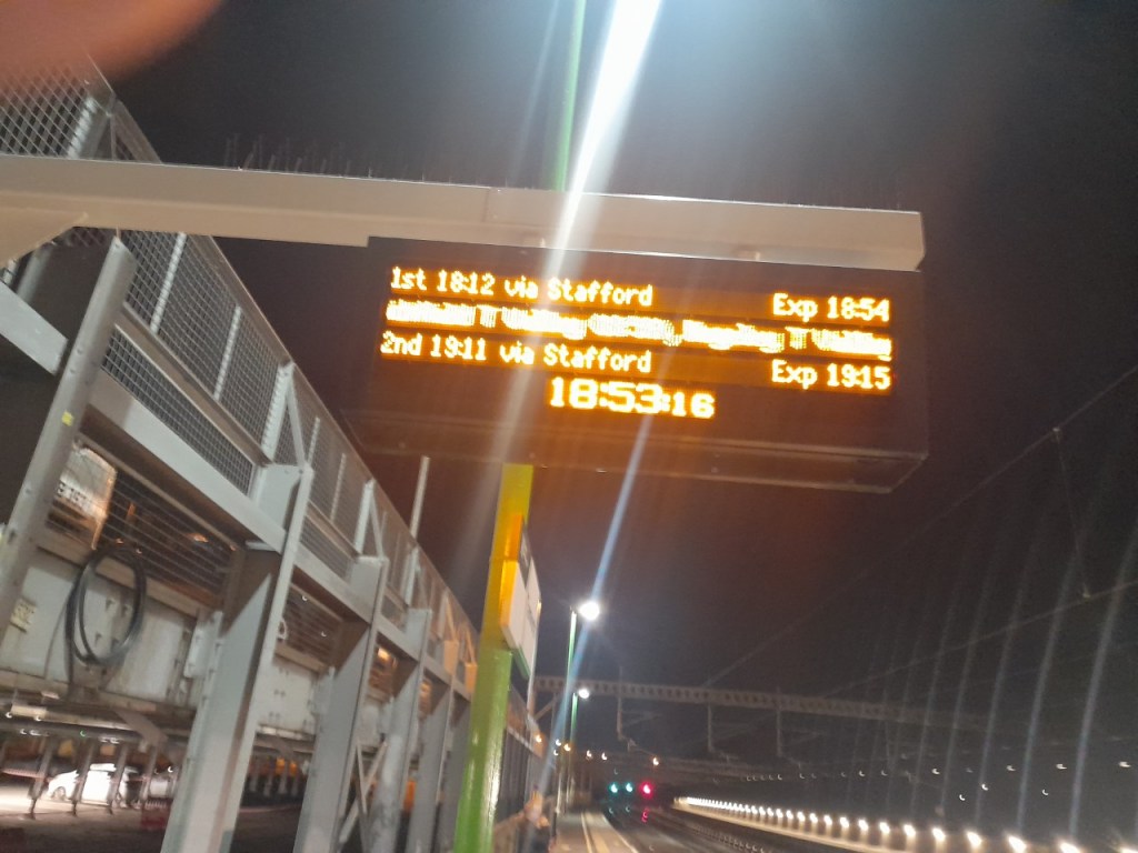 I opted to try and get a train back an hour earlier than my specified one, and the plan worked with the added bonus of the connecting one at Rugeley Trent Valley being in.