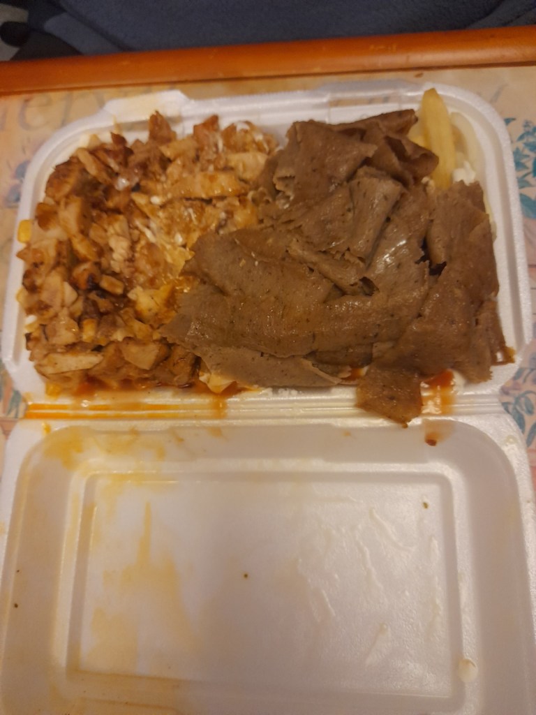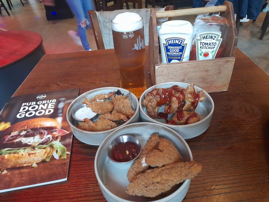 Chris had done a job here recently hence how he knew the place and the barmaid Joanne remembered him so he got a rapport with her going. He paid for the food and my pint of Inch’s. I’m trying to cut down on my eating so just went for a starter of crispy coated king prawns with a side of chips. He tried to make me have something more substantial but I turned this down. I’ve really changed.
