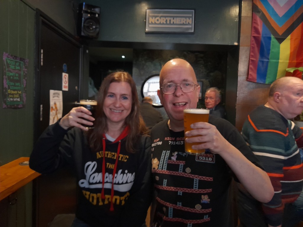 First pub was Black Horse. I’d mentioned to legendary blogger Blackpool Jane about the trip, she came to meet us and was waiting in here. You can catch her excellent blog here. This pub is grade II listed and has numerous rooms. I ordered Robinson’s Amarillo Pale Ale which was described as zesty and vibrant. The friendly barmaid explained it was a bit lively. I joked that it did say vibrant in the bio. She game me a bit more in a separate glass to make up for the head which was very decent of her. Naturally I explored all the rooms and it was easy to see why this is the local CAMRA branche’s Pub Of The Year twice on the bounce.