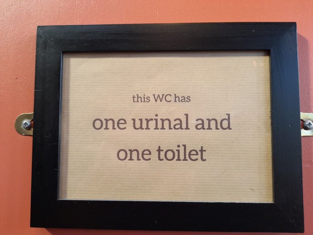There were two toilets, both with descriptions on the door as to what lay behind. The first door said one accessible toilet. I quite liked the thought of the other door having an inaccessible toilet that maybe you have to climb over a wall or something to get to. One man opened this door, clearly didn’t like the content so opted for the other. I later checked this out and it had a proper toilet right next to a urinal, with no dividing column. A bit like The R1 Bar in Walsall used to have. So you can have a dump while your mate has a piss and catch up on some gossip while in there.
