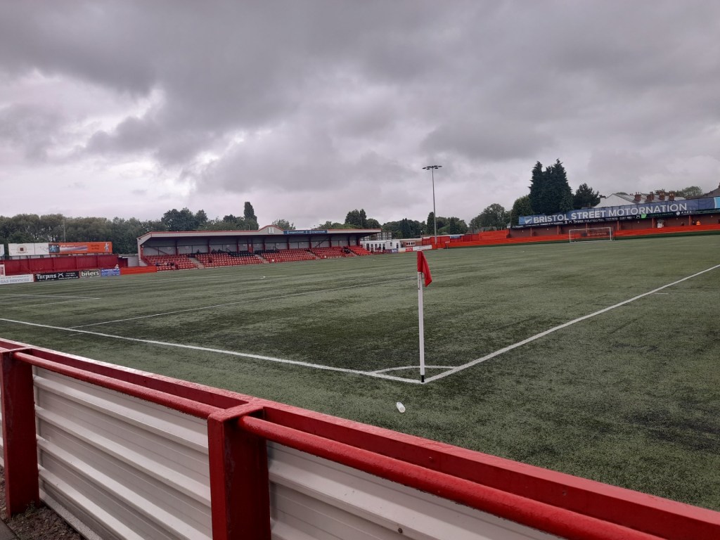 Tamworth’s ground is a 10 minute walk out of town and I was the last of our group to reach the turnstile and I was held up. I must point out the hold up was a steward stepping in the way and surveying something in the ground rather then me having extra searches or concealed weapons removed. When I got in I saw a gap by the wall and stood there to watch an attack and then saw the absolute legend from SciChem Don Mills who I hadn’t seen since the reopening of The Trough night in April so I stood with him. It was good to see a few other fans dotted around including Daz Anslow who I’be not seen since his wedding so all good. This is why pre season is good, seeing folks again.
